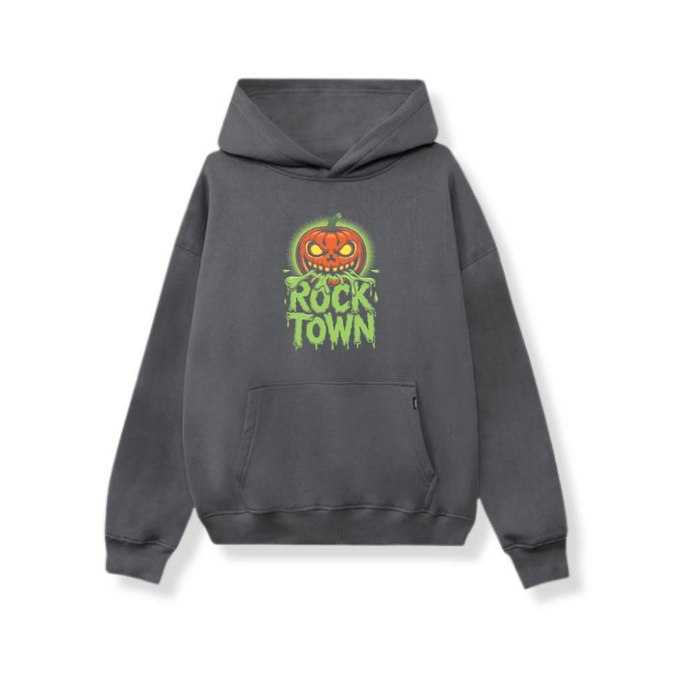 Rock Town Pumpkin Head Retro Cartoon Graphic Hoodie