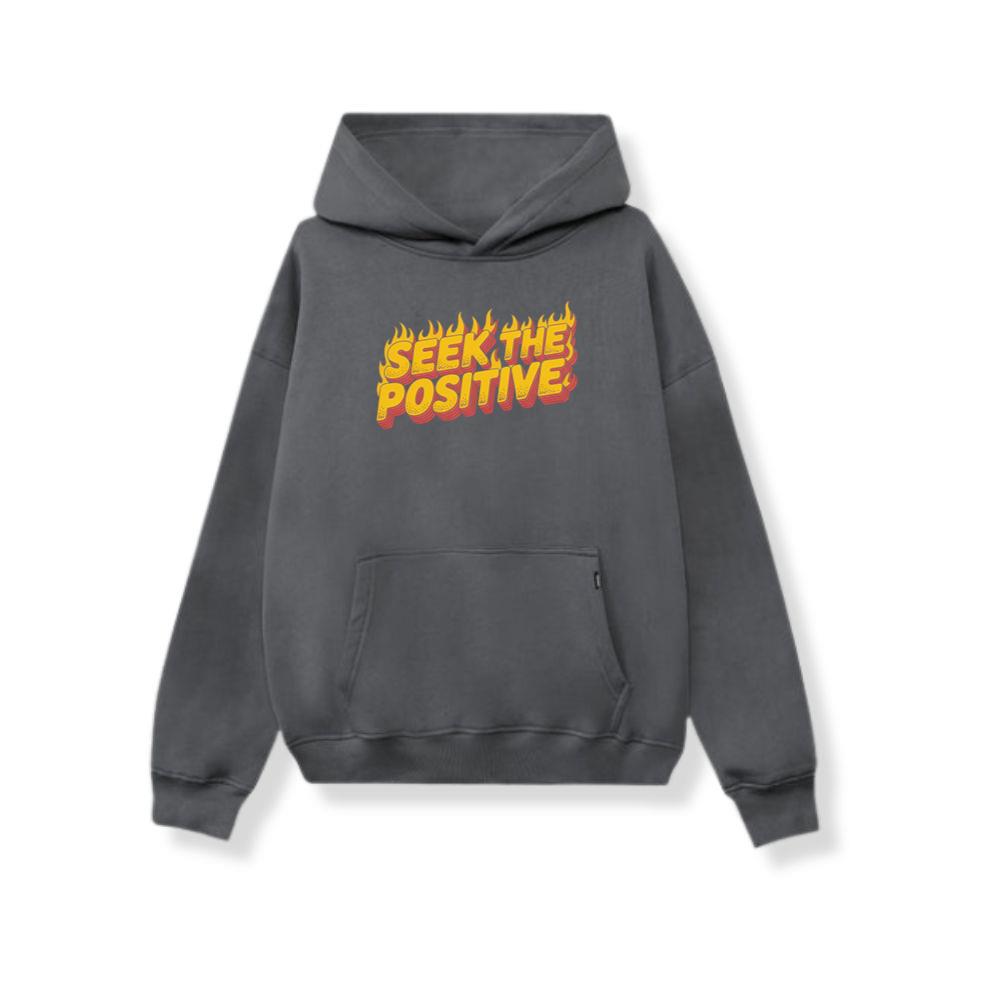 Seek the Positive Retro Flame Text Graphic Hoodie