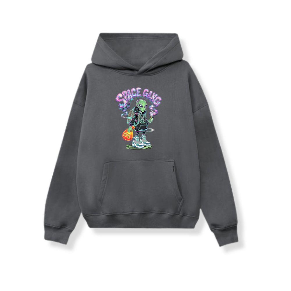 Space Gang Alien Retro Neon Cartoon Graphic Hoodie