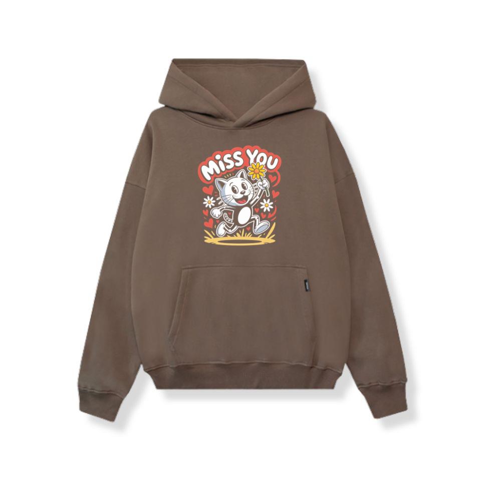 Miss You Skeleton Cat Retro Cute Graphic Hoodie
