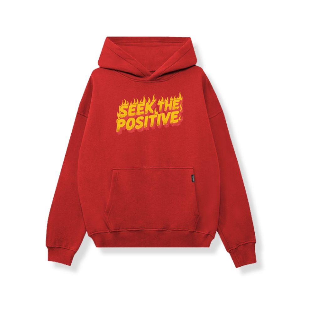 Seek the Positive Retro Flame Text Graphic Hoodie